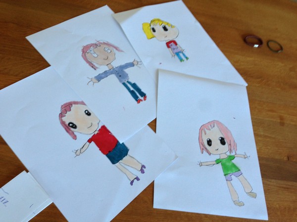 Signe, vår lilla femåring (snart sex) har, inspirerad av sin stora syster börjat rita manga och timmars övning ger färdighet.