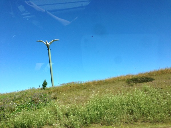 På vägen hem åkte vi förbi Skurup, min födelsestad där Signe krävde denna bild på Nils Holgersson och Akka