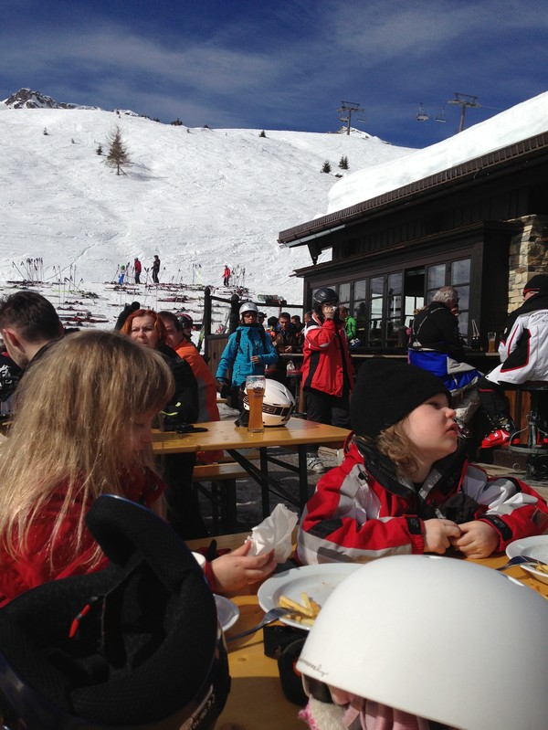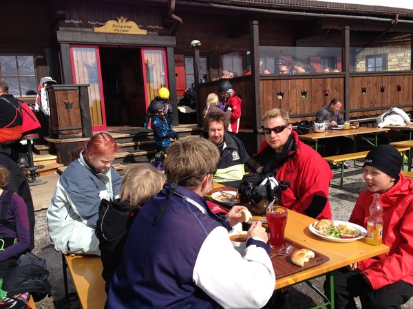Fredagen var ännu en härlig skiddag, men jag var rejält sliten så jag och Signe höll oss nere vid sittstolsliften tills lunch då vi mötte upp helavårt sällskap högst uppe på toppen. Sen tog jag mig vatten över huvudet då jag tänkte åka B19 ner, skulle bli skönt med lite glassig åkning sista dagen. Men ett beslut i sista stund gjorde att det blev B18 istället, en pist som i mitt slitna tillstånd var lite för jobbig för att sista eftermiddagens åkning skulle bli riktigt njutbar. Frånåkt av mina barn, och väldigt, väldigt trött efter att ha jagat dem så kom jag och Signe till sist ner och tog afterskin hemma.