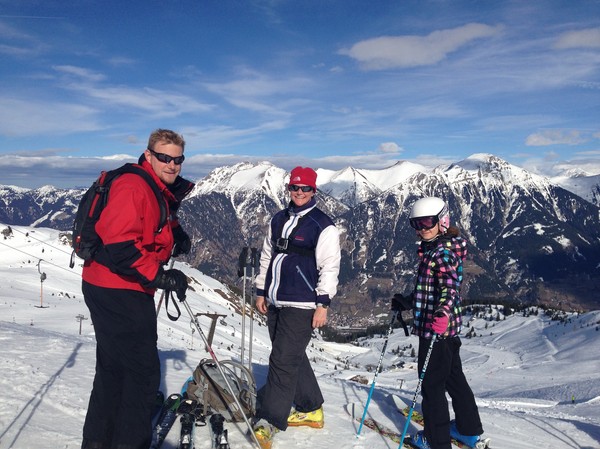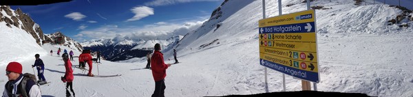 Sol, lagom kallt, perfekt för mig som är en typisk nöjesåkare, för hårt underlag för vissa av mina mer avancerade skidresenärer. Vi tog gondolen upp till toppen och började åka. Allt gick bra i början men ganska snart visade sig att Signe tagit ett kliv tillbaka i sin skidutveckling och vågade inte åka nerför samma typ av branta backar som hon fixat innan i Säfsen. Allt blev för mycket helt enkelt så det blev en ganska jobbig nerfart för Liv. Som tur är så är hon väldigt bra på skidor och lät Signe åka mellan benen de allra flesta partier. Mot slutet av dagen släppte det lite mer och då åkte vi ner till Angertal på andra sidan innan vi åkte hem igen. Tyvärr så avslutades dagen med att vi skulle ta en blå ner till mittliften ner mot Bad Gastein. Den var dock inte blå eller väldigt felskyltad. En riktig pärs, vilket inte är en så bra avslutning inför dagen efter. Överlag kan man säga att pisterna var väldigt varierande och att man inte kunde veta vad röd, eller blå betydde. Att de inte hade gröna pister som de påstod stämde inte heller, då stora delar av de blåa var just gröna transportleder. Enda sättet att verkligen veta var att testa helt enkelt.