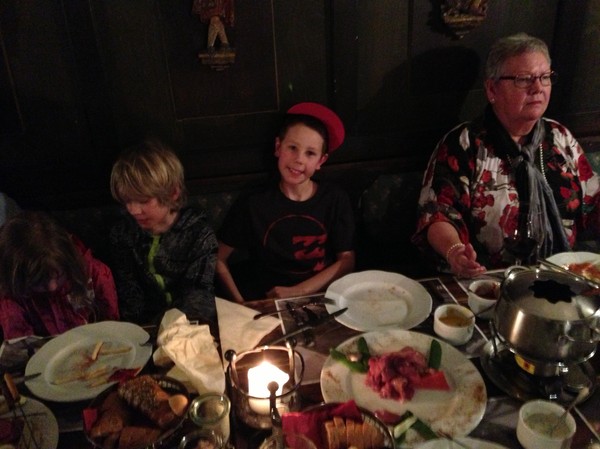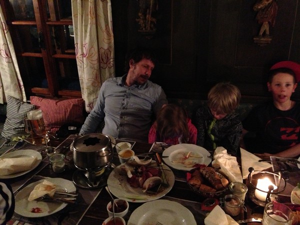 På kvällen bjöd vi på födelsedagsfondue på Bellevue Alm, ett värdshus man bara kan nå med en gammal enstols-sittlift.
