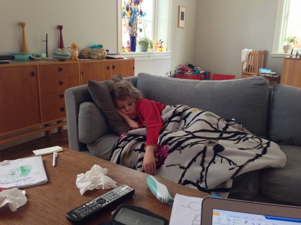 Senaste veckan har Signe varit sjuk, idag var första dagen som hon inte haft feber, men hon var trött, förkyld och kinkig. Och när nu Signe börjar bli frisk så fick istället Siri feber, därför var det återigen jobb hemma som gällde idag. Feberfri men inte så pigg.