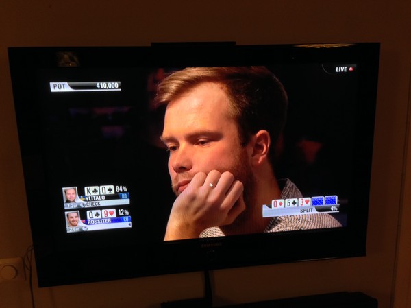 Kom fel i varenda pott, hade AQ mot AK, KJ med träff på knekten för topp-paret som sedan blev utdraget med ett A på river, en massa sådana situationer med en rivrad hålstege mot mitt hundrade topp-par som inte fick stå.