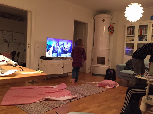 Det har varit mycket sömnad de senaste veckorna, Liv köpte tyger och har sytt julgardiner och kuddfodral på kvällar och helger, väldigt ambitiöst med tanke på julstressen.