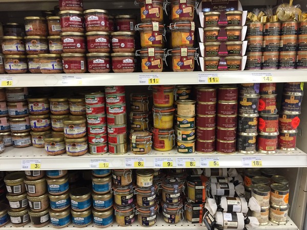 Det franska storvaruhuset E.Leclerc har hur mycket saker som helst, t.ex. en hel hylla med olika ankleverprodukter, och det är först i kassan märker man av det speciella franska kynnet. Istället för att börja slå in varorna måste man först tömma hela innehållet, vilket skulle få en svensk kassörska att kasta dödande blickar, men den franska kassörskan sitter tyst, utan att säga ett knyst tills vi frågar varför hon inte börjar. Då gestikulerar hon att allt ska upp först. När allt är uppe tar det lång tid, glöm inte att ha med egna kassar, det säljs bara dyra plastväskor på plats ( någon sorts miljötänk, fast det inte stämmer in med resten av utbudet och känslan?) Överlag så är fransmännen lika dåliga på engelska som vi är på franska och infriar alla våra fördomar om att inte vilja försöka förstå om man inte pratar franska.