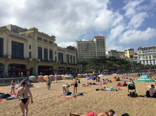 För att kompensera för det lite misslyckade badet dagen innan på Plage d'Erromardie tog vi en ny tur till Biarritz och Grande Plage dagen efter. Rejäla vågor men till skillnad från Kalifornien får man bara bada på en minimal remsa på stranden, går man utanför så viftas det och visslas. Tänk er en stor strand där man bara får utnyttja en knapp fjärdedel att bada på. Det blev ganska trångt och lite farligt sent på eftermiddagen. De har sitt eget lilla sätt att arrangera det hela fransmännen.